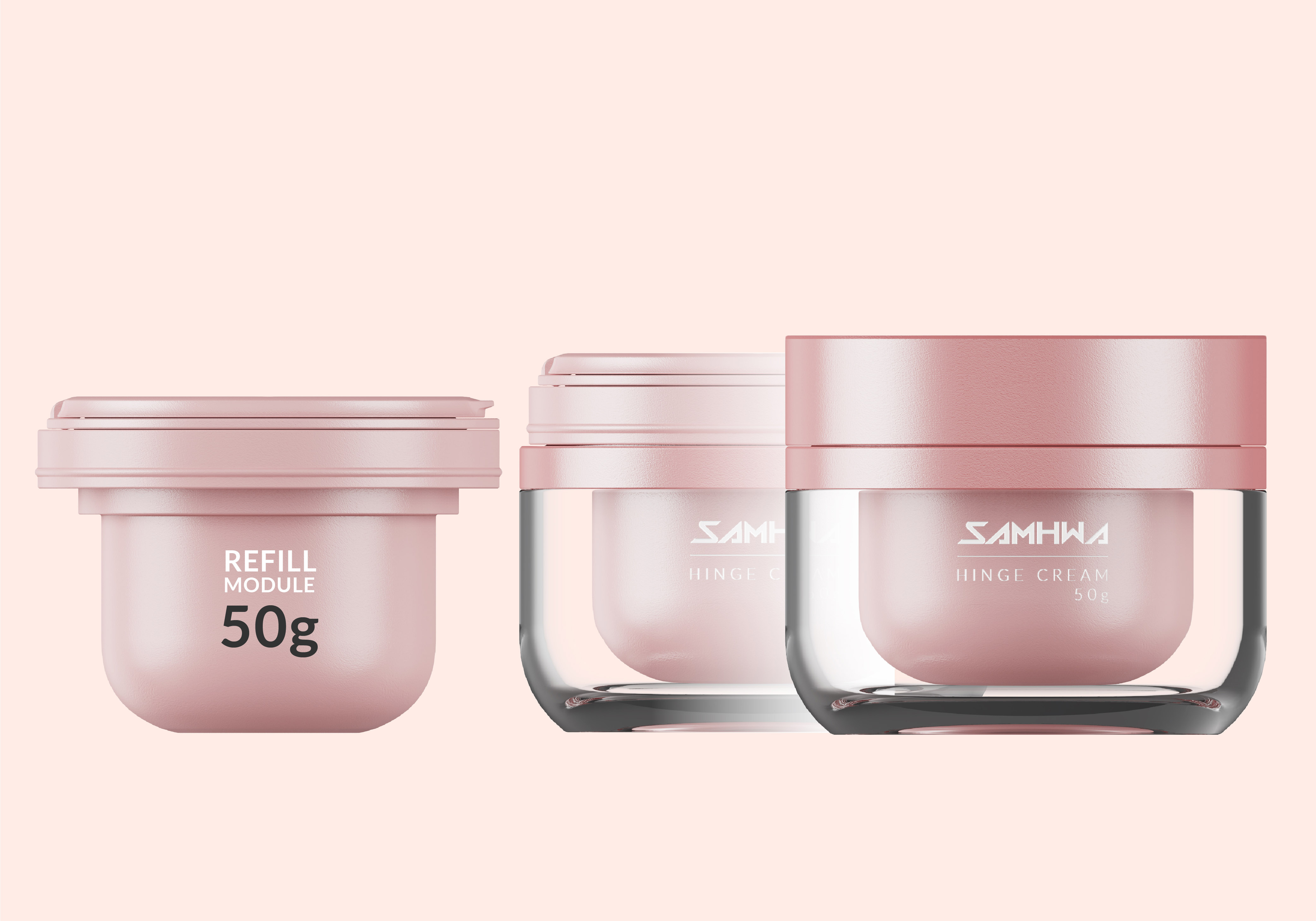 Refillable cream jar with hinge type of the closure.