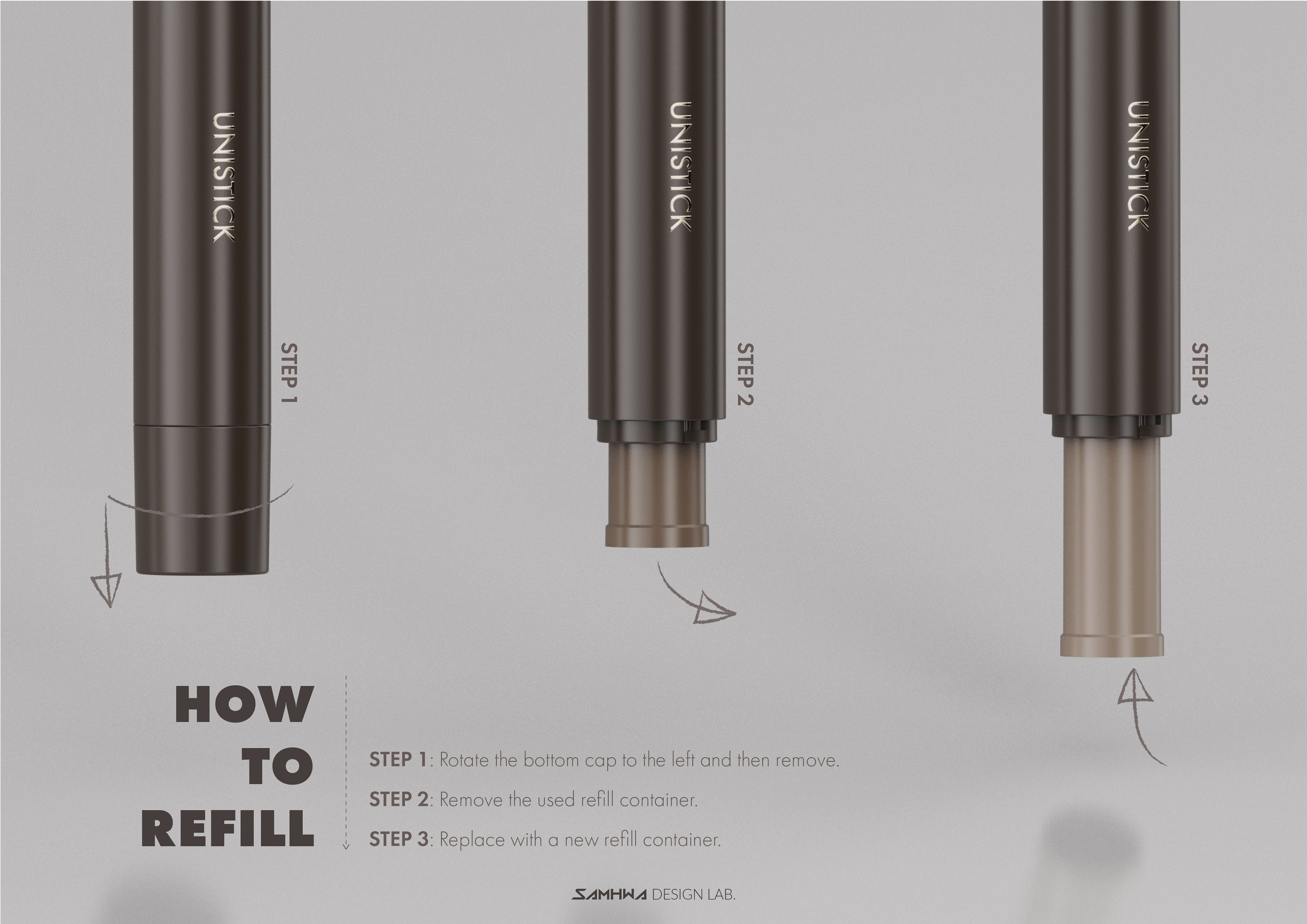 Twist the shoulder to dispense the formula through various applicators. Its eco-friendly, single-material refill module is easy to replace, and the airless system ensures hygienic, efficient use down to the last drop.