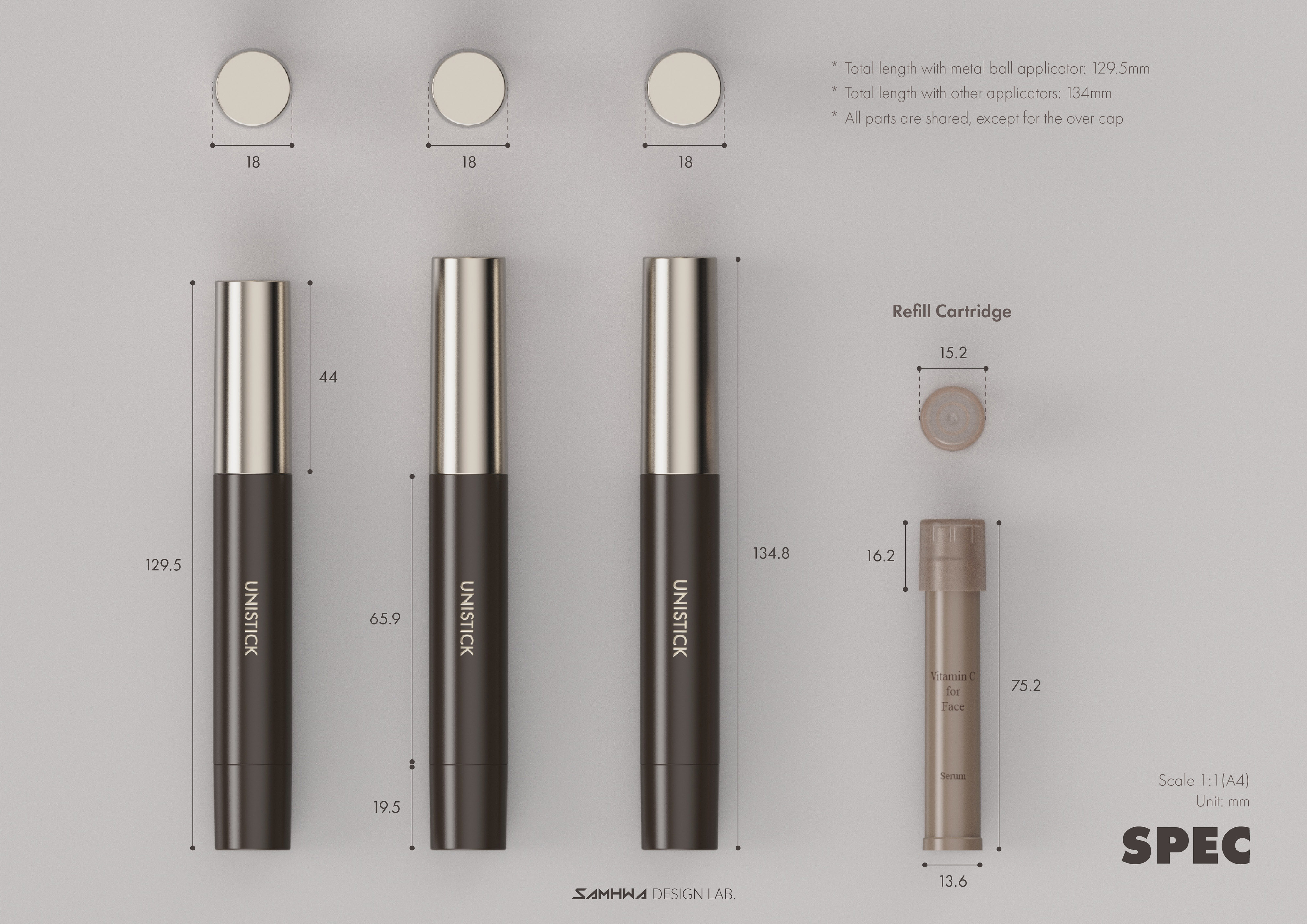 ∅18 x H128.2 mm(Ball Type) / H136.2 mm(Others)