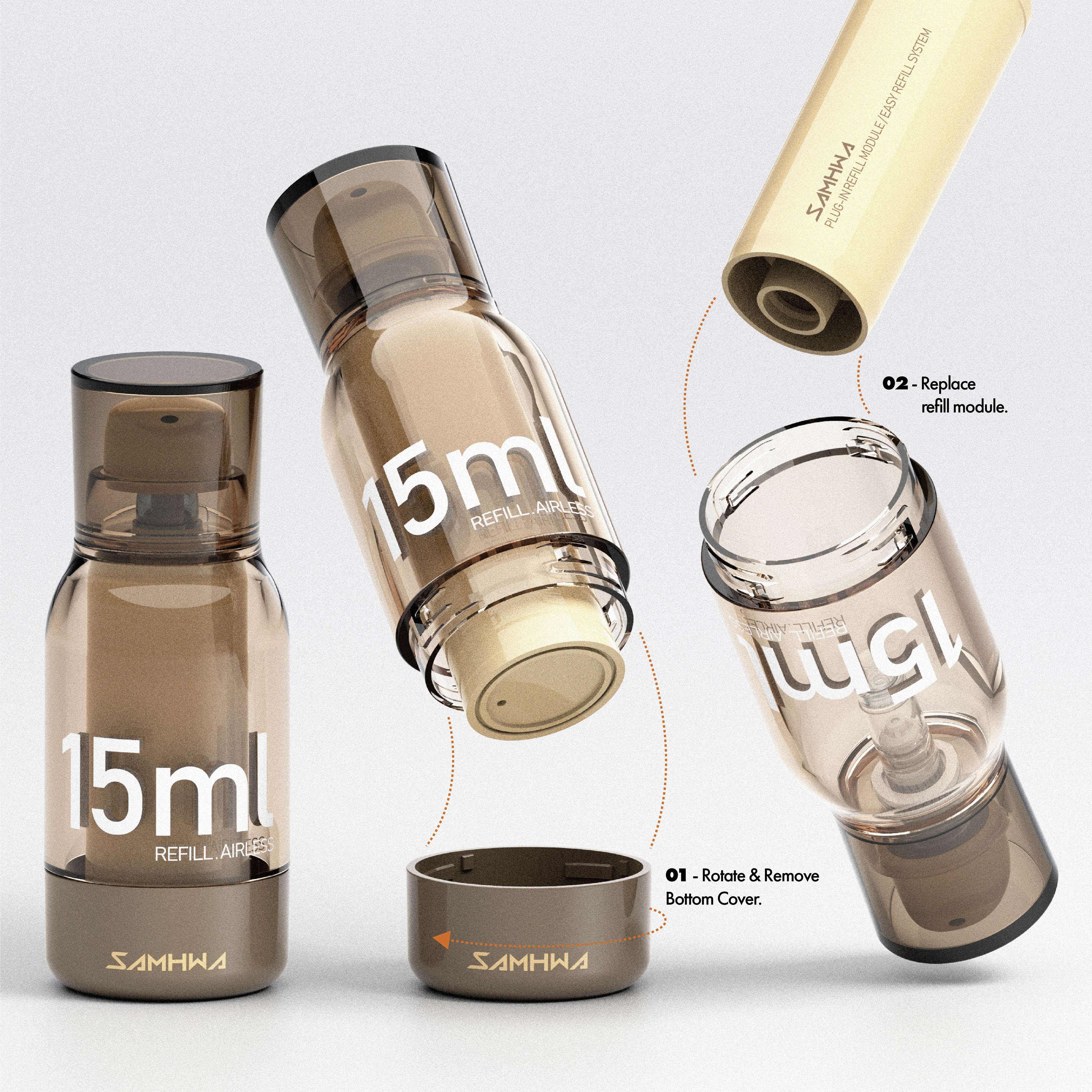 Sustainable Airless Design, Effortless Refill.