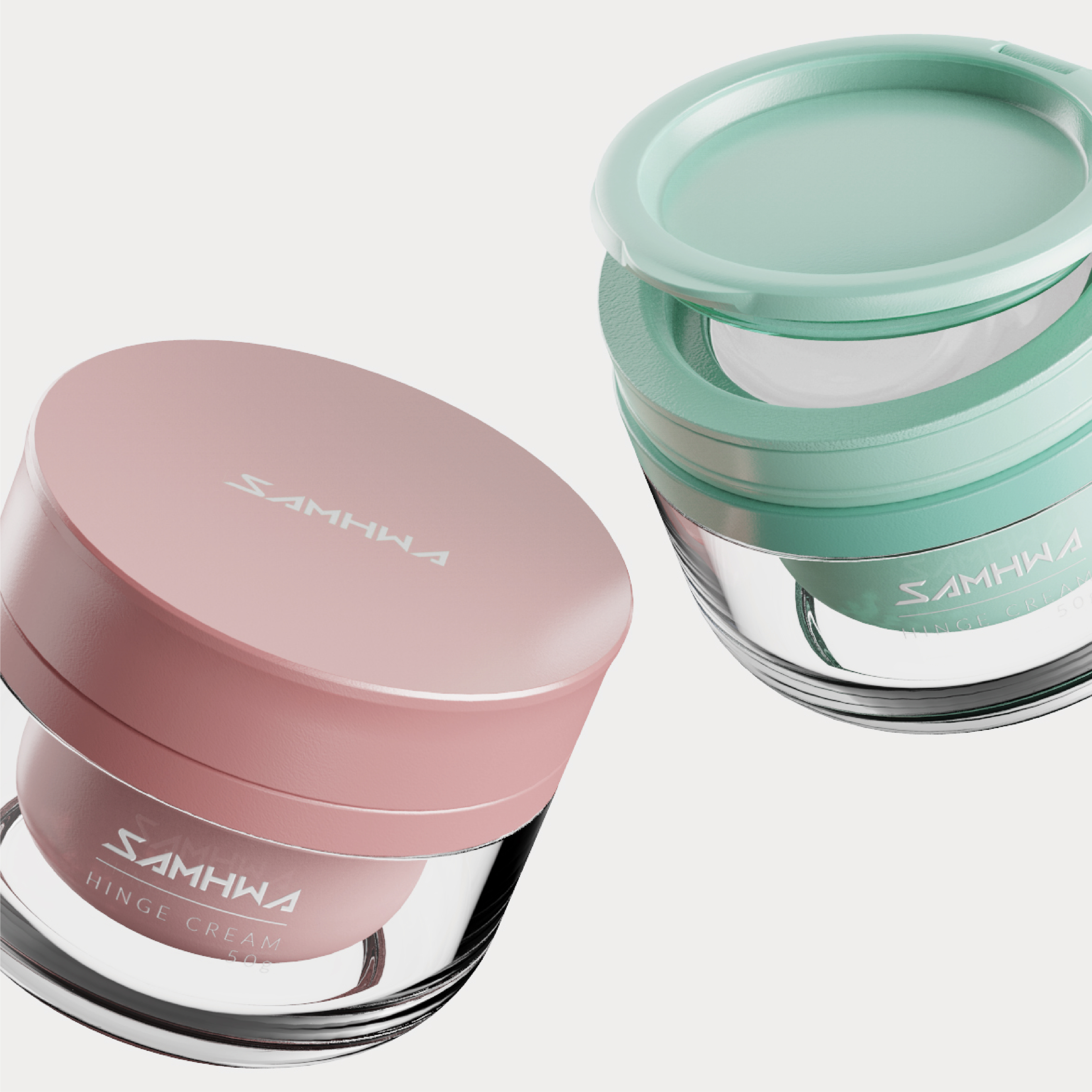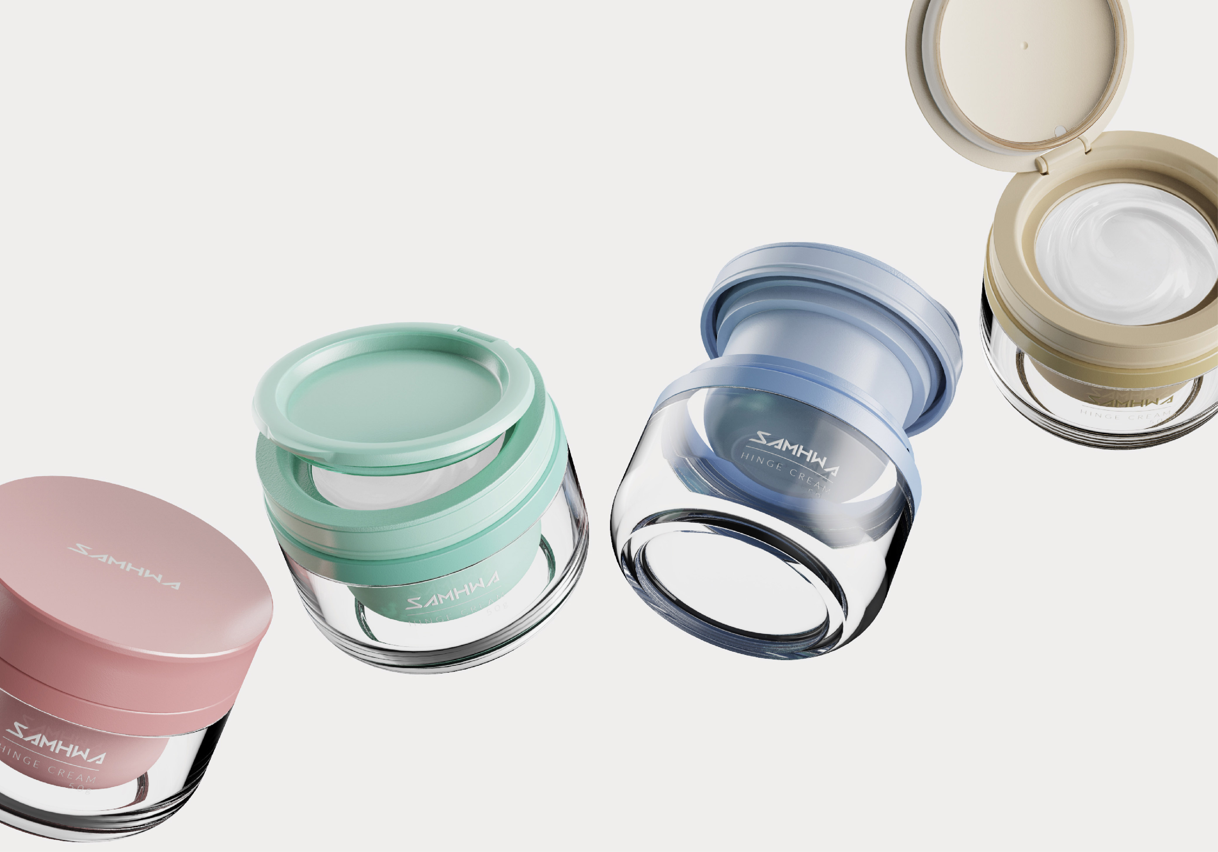 Refillable cream jar with hinge type of the closure.
