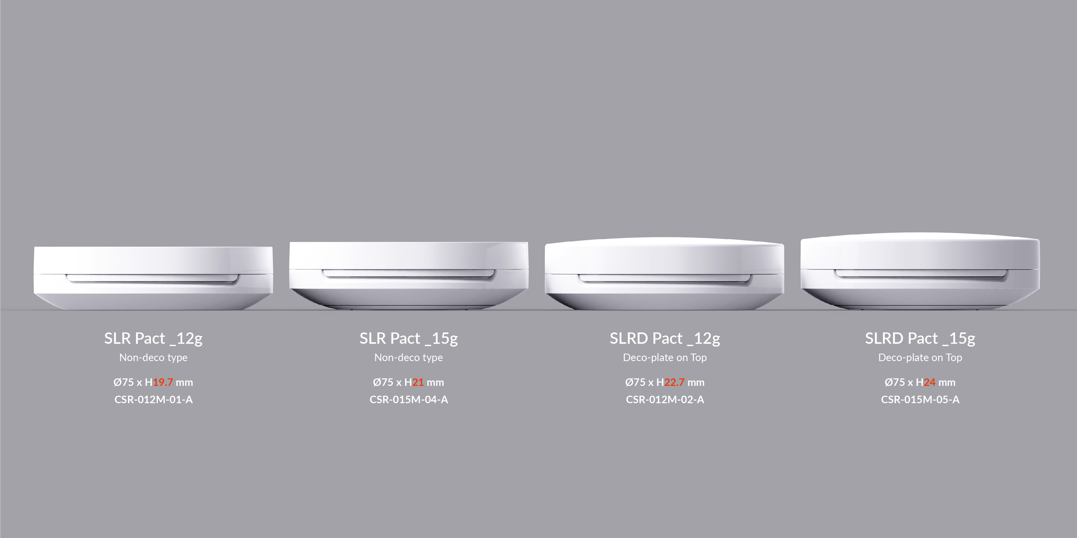 Ultra slim refillable cushion package with various options. (12 & 15g / deco-plate optional)