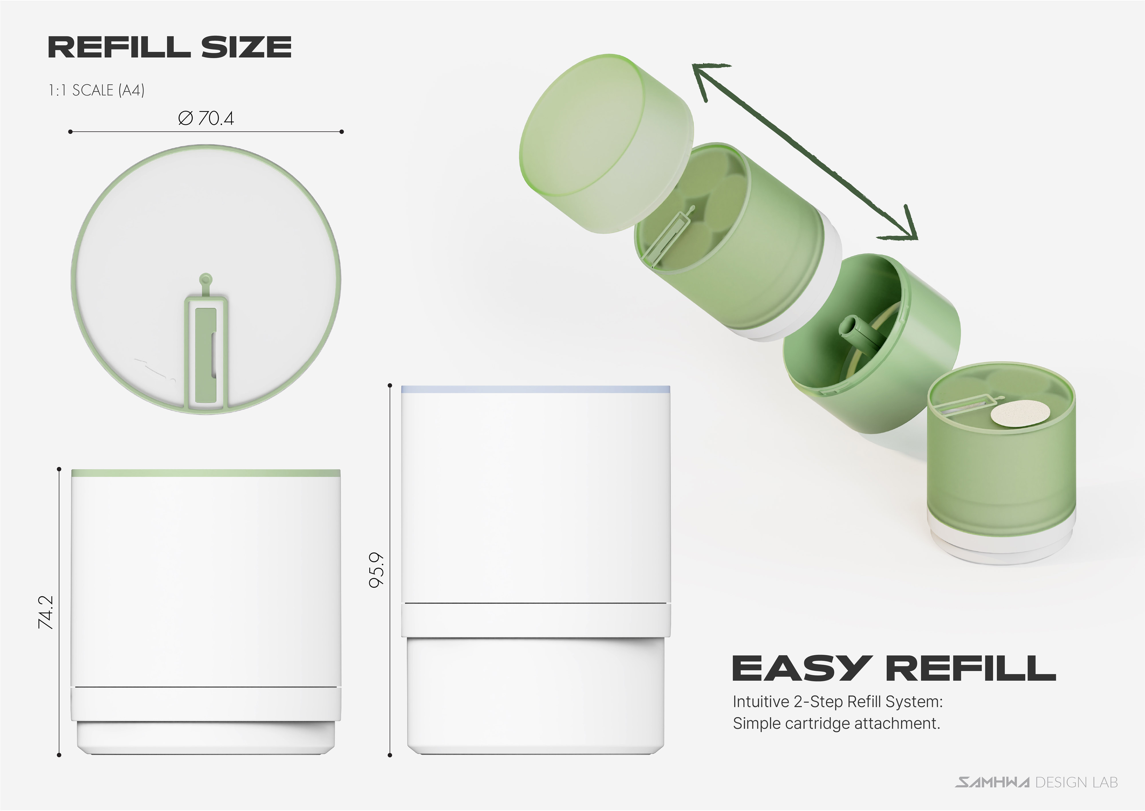 위생은 기본, 사용은 간편하게! 매 순간 신선하게 갈아 쓰는 편리함과 피부에 오래도록 지속되는 밀착력, 두 가지 모두를 담아낸 새로운 차원의 하이드로겔 패치 패키징. - 혁신적인 그라인딩 메커니즘 - 우수한 회전감도 - 에어타이트 및 공기 접촉 최소화 구조의 우수한 위생성 - ALL PP 단일소재 (PCR PP 30% 적용 가능) - 잔량 제로